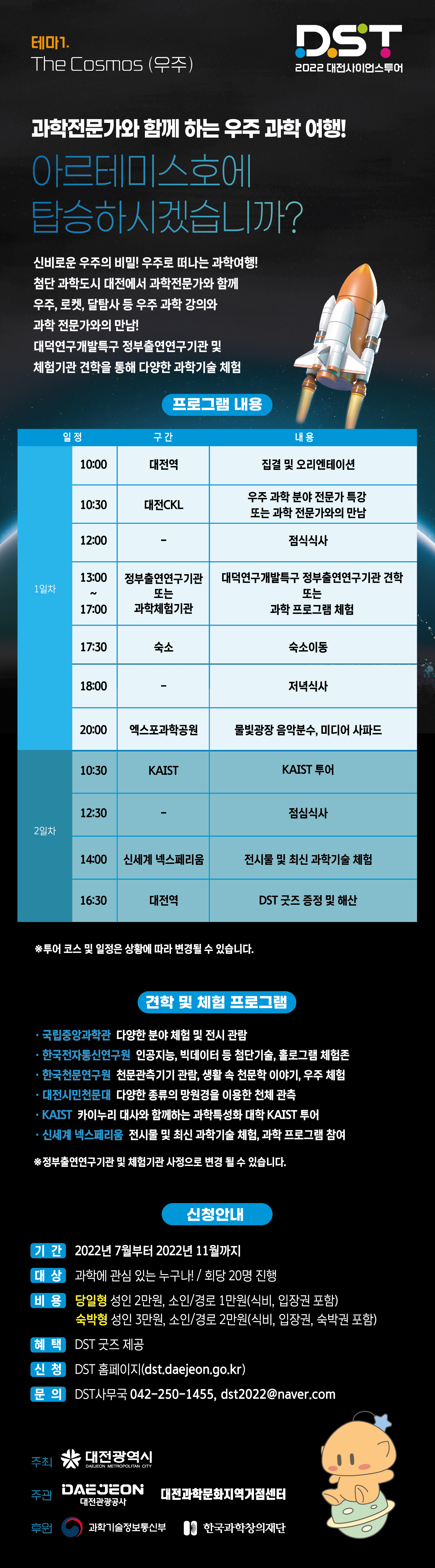 - 신청 접수는 DST홈페이지 온라인 신청으로 운영하며 예약 확인 후 3일 이내 예약승인 및 상세사항 문자 발송